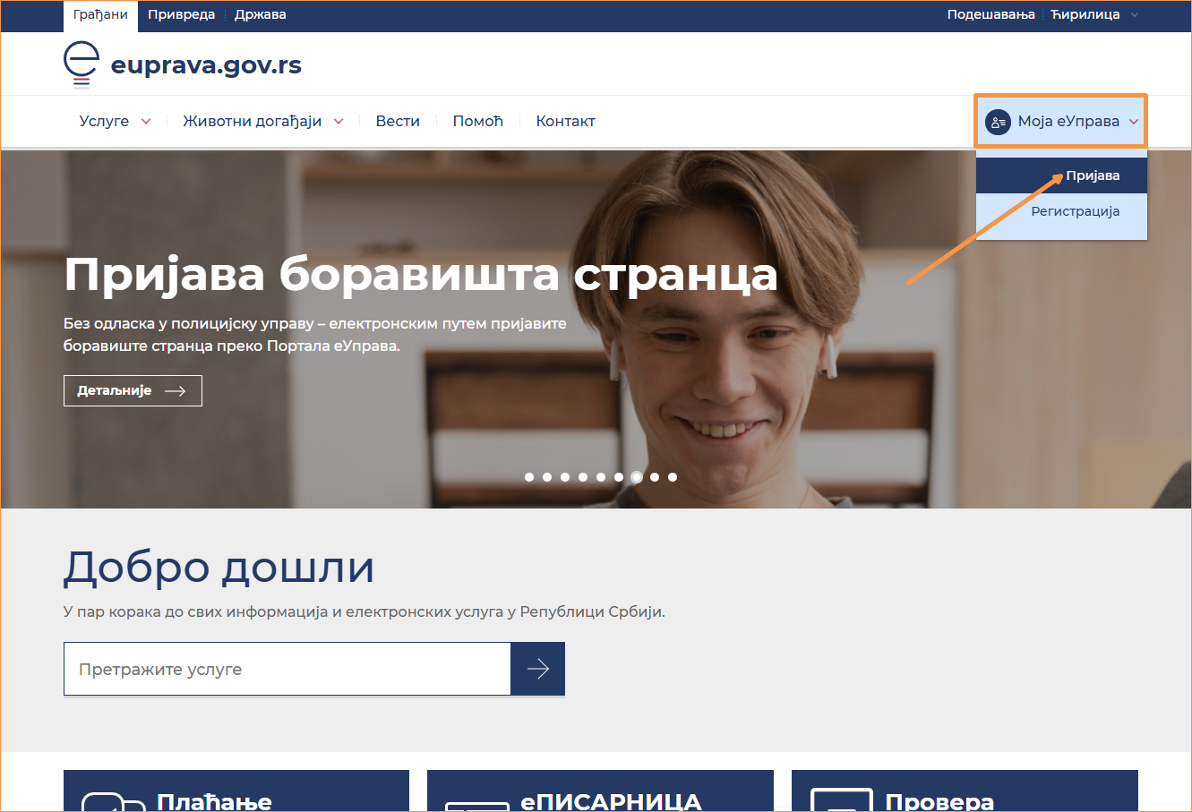 1) Posetite portal eUprava.gov.rs
